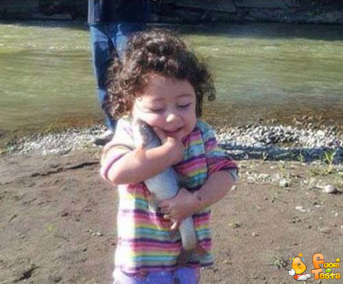 Guardate con quanto terrore questo cane guarda la donna che vuole accarezzarlo e che vuole portarlo in salvo.