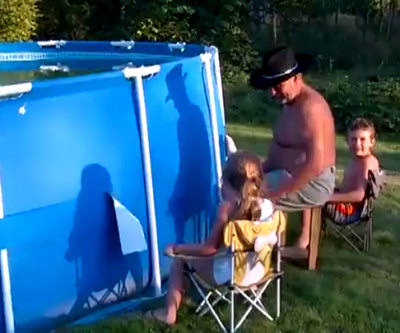 Deve avere qualche crisi d'identità questo simpatico e divertente maialino che sguazza nell'acqua con un curioso costume.